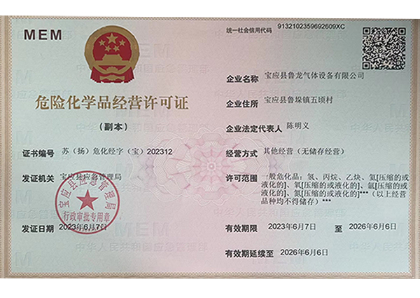 經營許可范圍:一般; (充裝):氬[壓縮的或液化的]、氧[壓縮的或液化的]、氮[壓縮的或液化的]、二氧化碳[壓縮的或液化的]一般危化品:丙烷、乙炔、氦[壓縮的或液化的]、